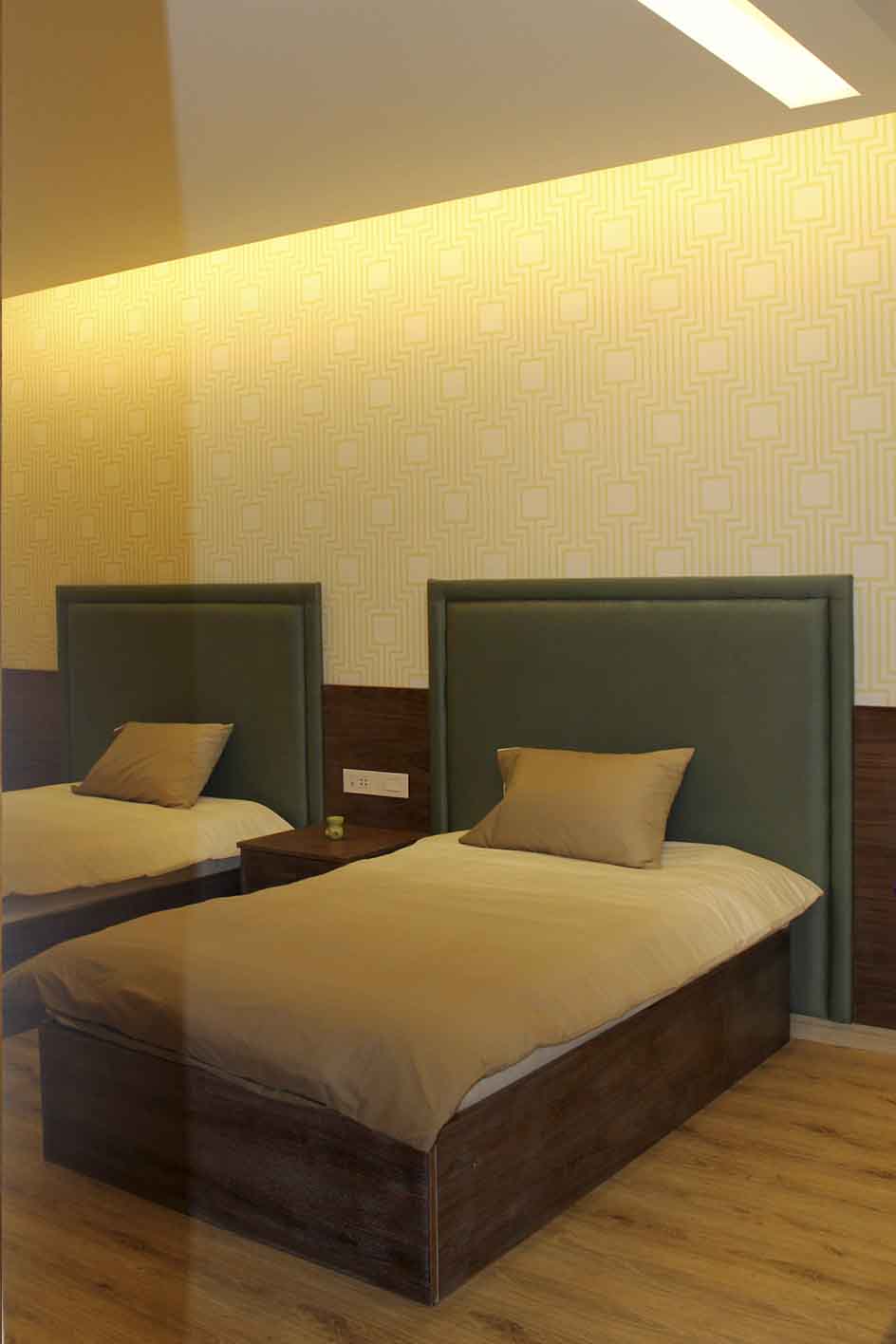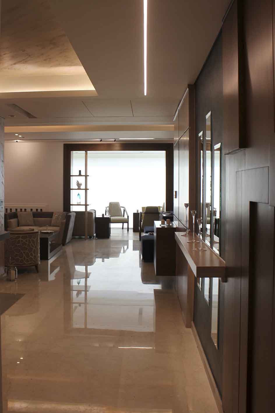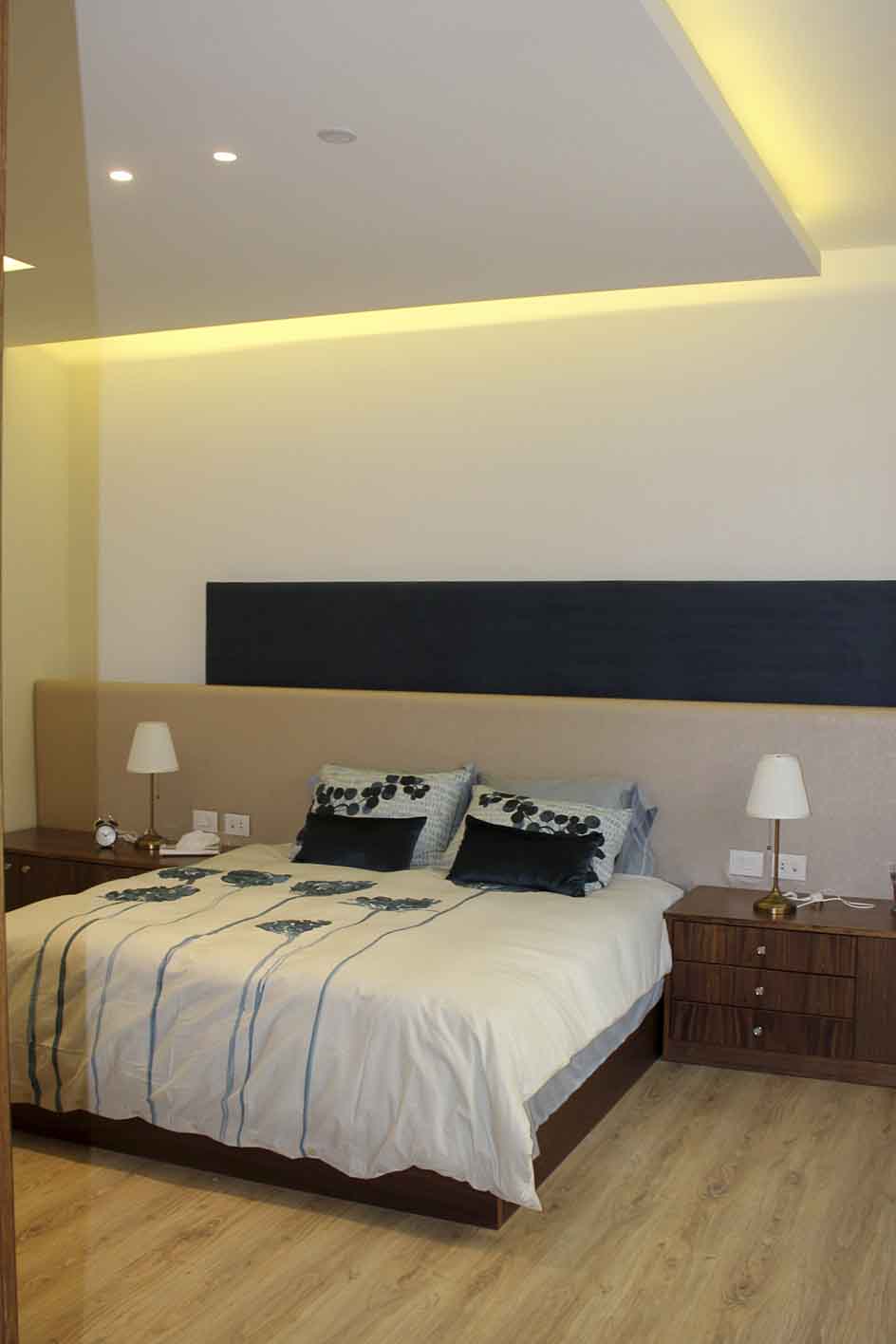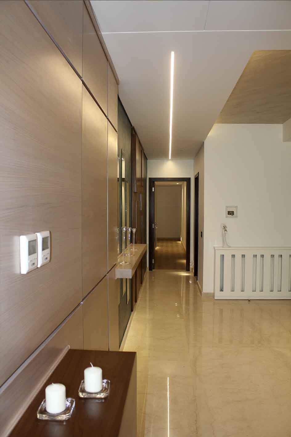 Nestled between the striking mountains of Harissa and the iconic shoreline of Jounieh, the inspiration behind this residence comes from its natural surroundings. Drawing from the levels, lines, and light on the mountains outside, the residence’s interior integrates geometric shapes and several ceiling levels, amplifying light that reflects off the floor and two-dimensional wooden wall, and giving functionality to the positive space. A one-piece, 5-meter-high window seamlessly connects the interior with a terrace that leads to a pristine stretch of green – the private garden. Hedges carefully conceal the outdoor jacuzzi and metal perforated pergolas, and completing the space is a solid, high stone wall dotted with wooden boxes within a metal grid, home to the residence’s vertical vegetable garden.