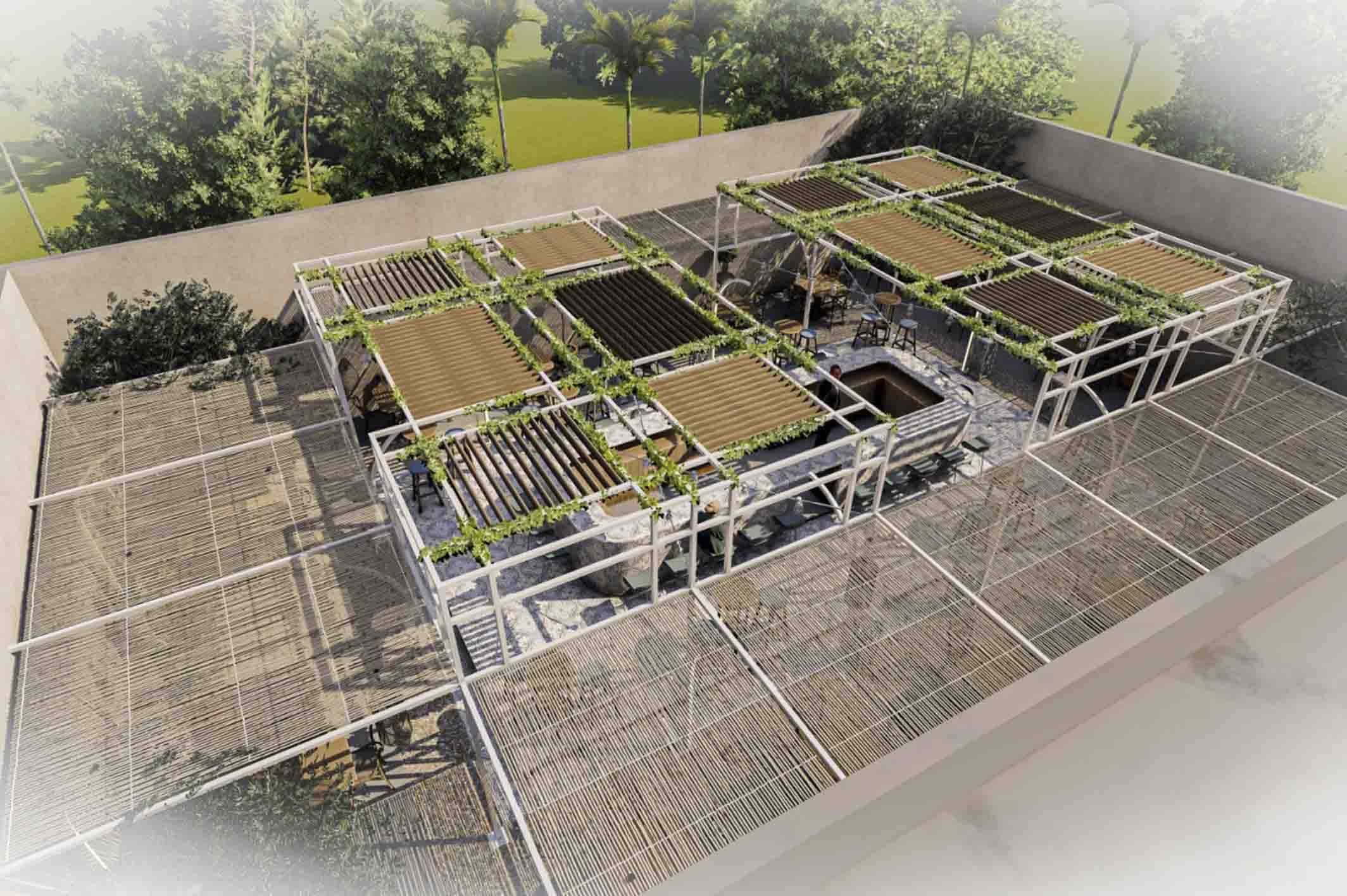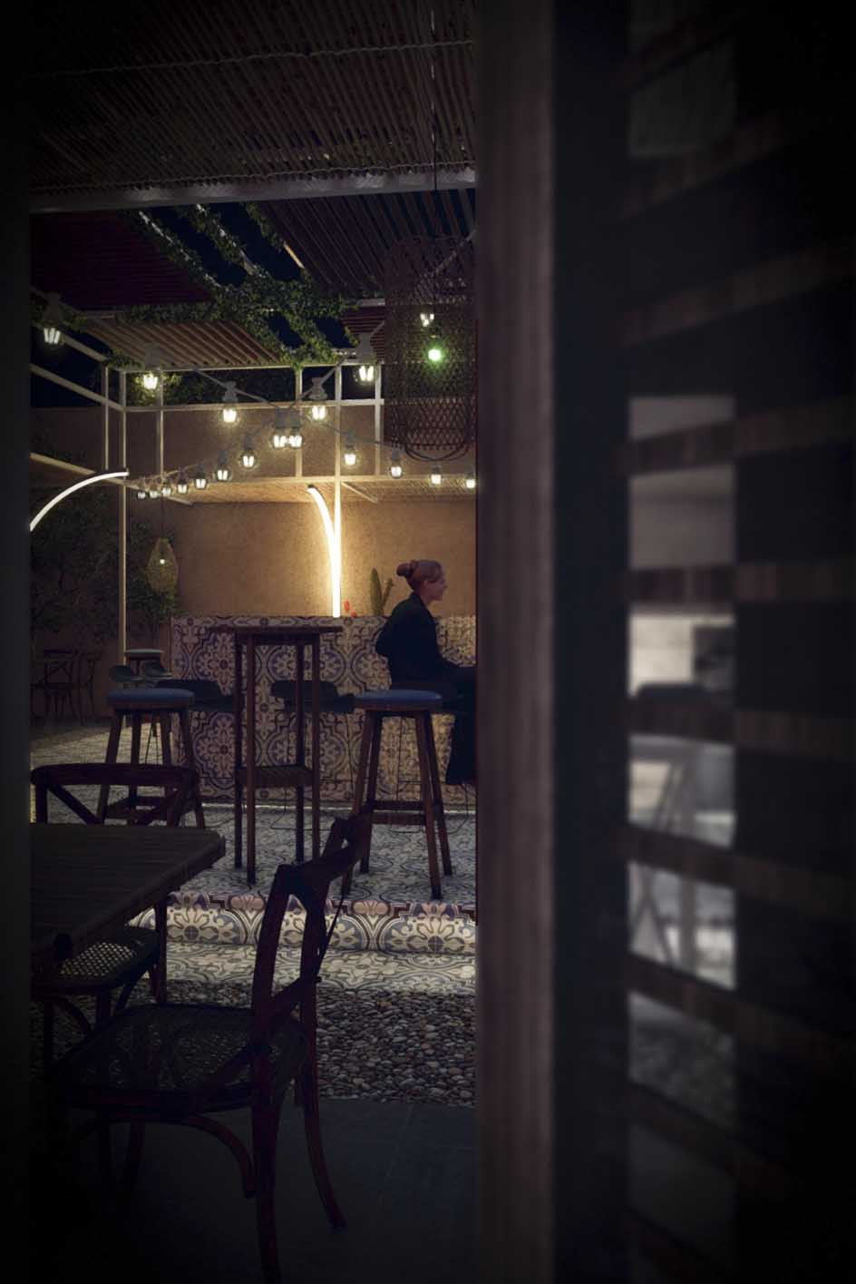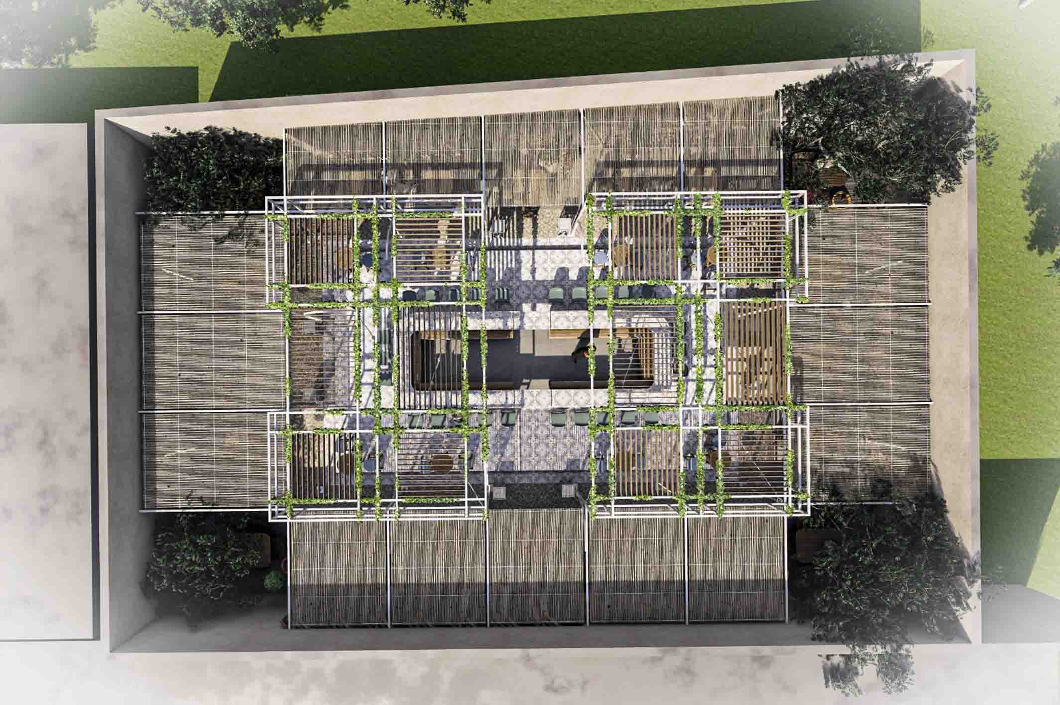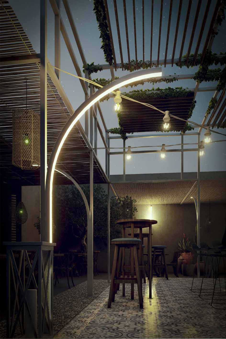 Infusing Lebanese culture into a restaurant and bar, spanning from Beirut to Chad, brings a rich tapestry of flavors and experiences. The metal structure shading, reminiscent of traditional Lebanese architecture, provides both shelter and an artistic focal point.
