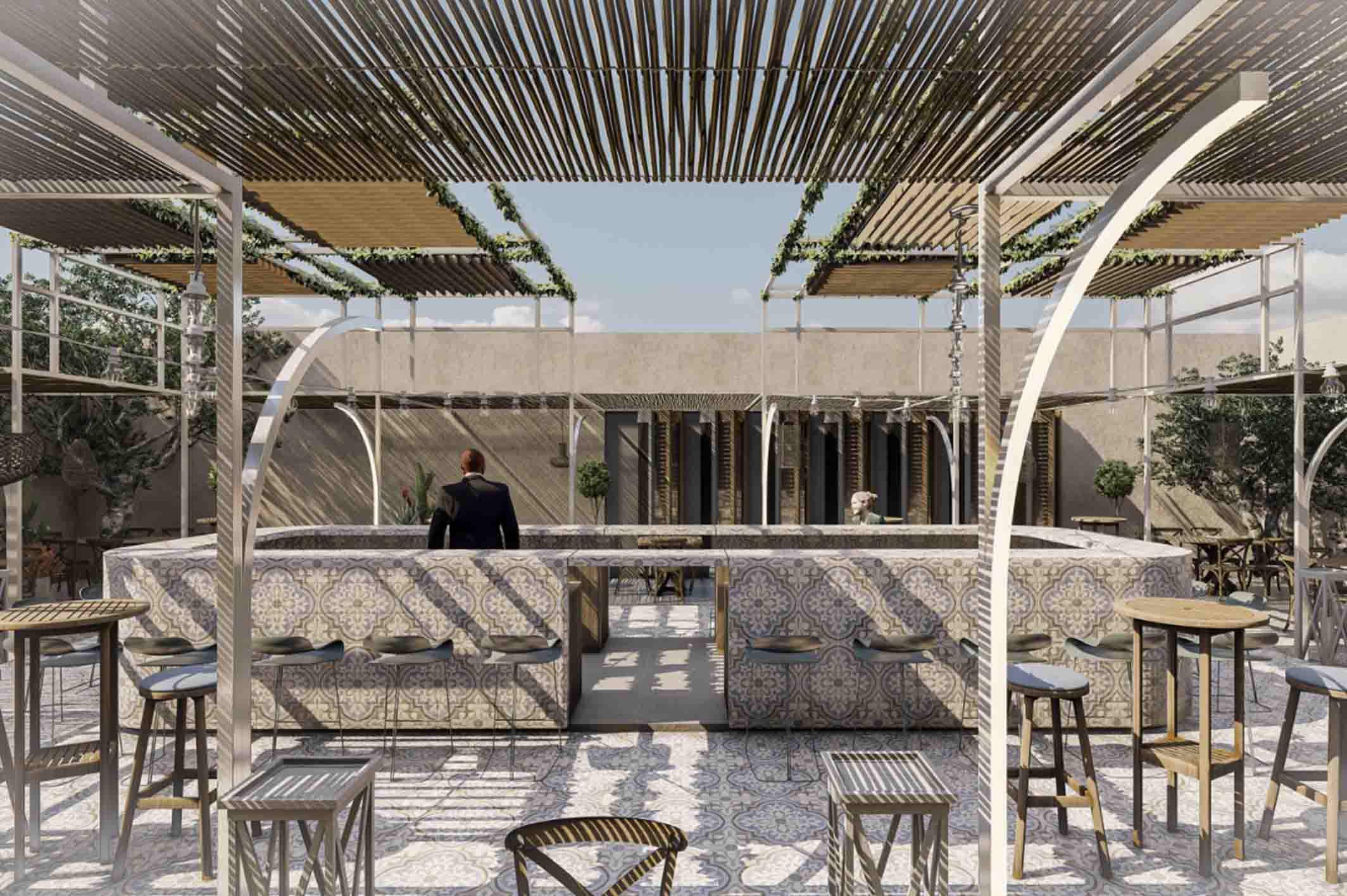 The U-shaped bar hub, surrounded by services and adorned with wood, metal, stone, and concrete textures, evokes the bustling atmosphere of traditional souks, where every corner is a treasure trove waiting to be discovered. Incorporating lush greenery adds an inviting touch, creating a harmonious blend of nature and culture. This unique concept promises to transport guests on a culinary and cultural journey unlike any other.